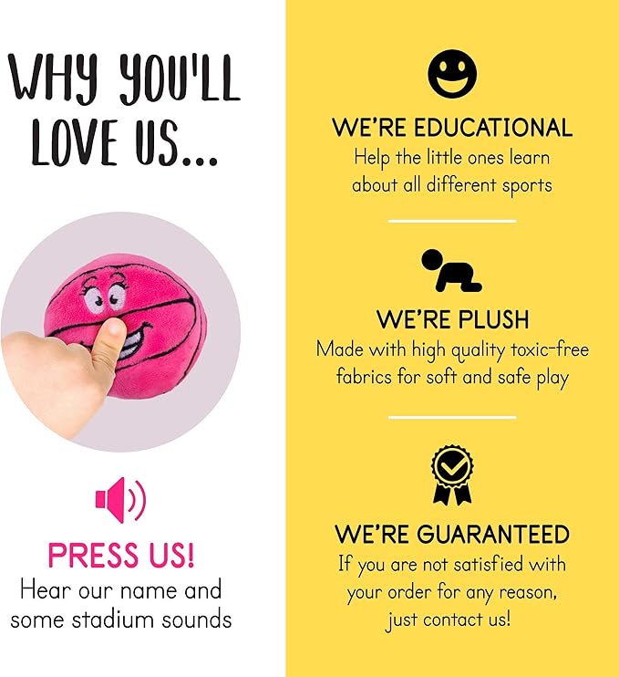 Talking Plush Sports Balls for Toddlers 1-3 | Soft Baby Toys | Set of 4 - Basketball, Baseball, Soccer Ball & Football
