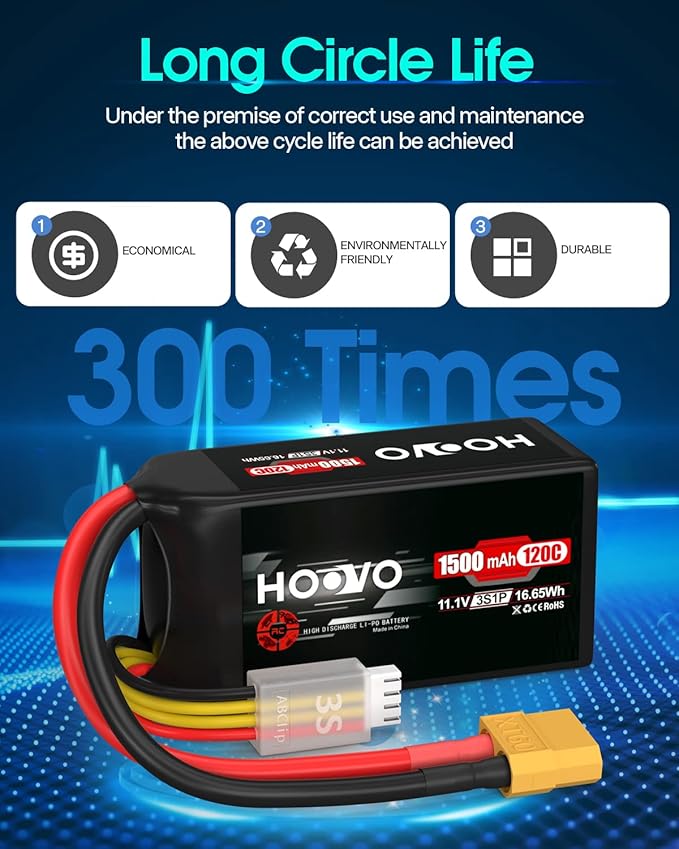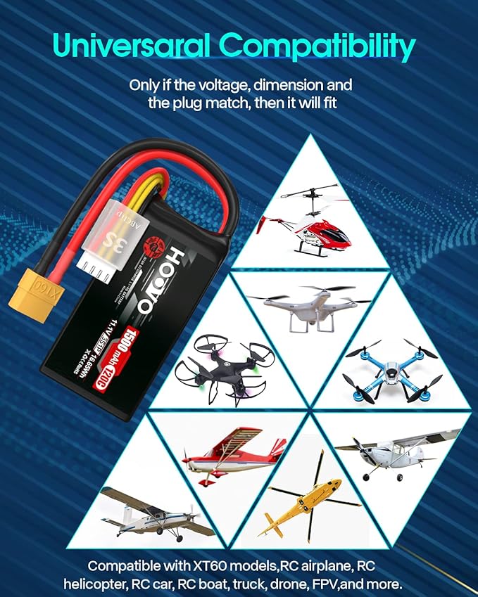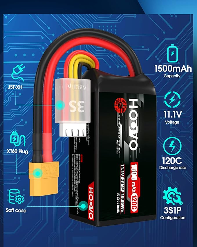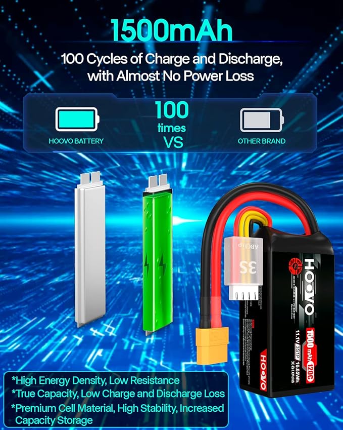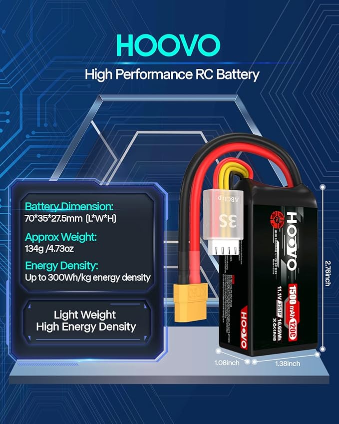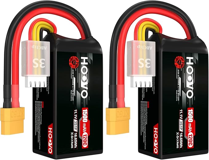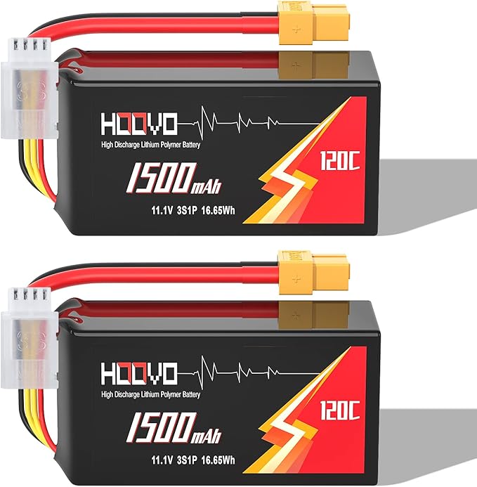 HOOVO 3S 120C 11.1V 1500mAh LiPo Battery with XT60 Plug for FPV Racing RC Quadcopter Helicopter Airplane Multi-Motor Hobby DIY Parts (2 Pack)