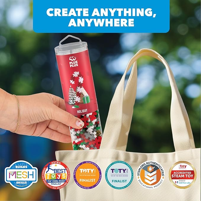 PLUS PLUS 240 Piece Interlocking Building Blocks for Kids, Open Ended Connecting Toys, STEM Bin Classroom Mini Manipulatives - Holiday Mix Play Tube