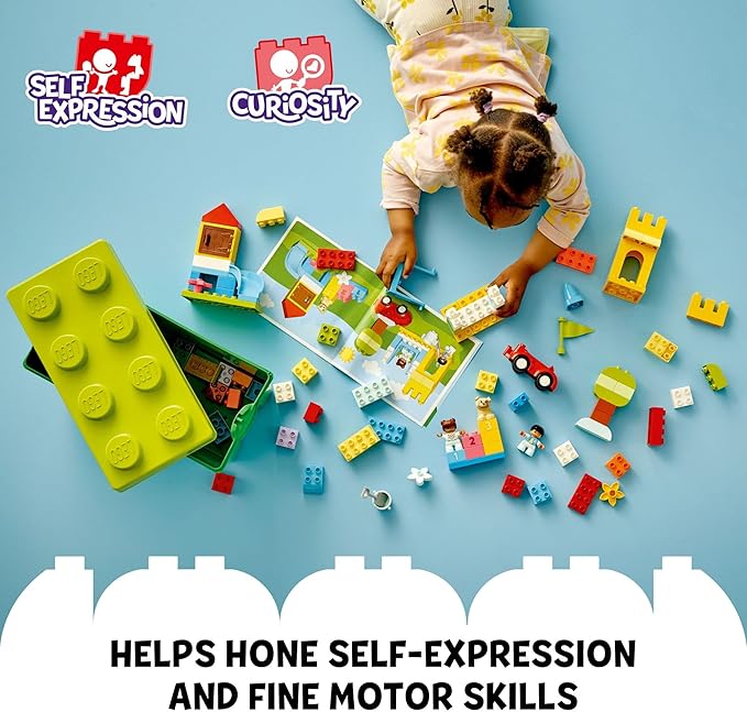 LEGO DUPLO Classic Deluxe Brick Box 10914 Starter Set - Features Storage Box, Bricks, Duplo Figures, Dog, and Car, Creative Play, Great Early Learning Toy for Toddlers Ages 18+ Months