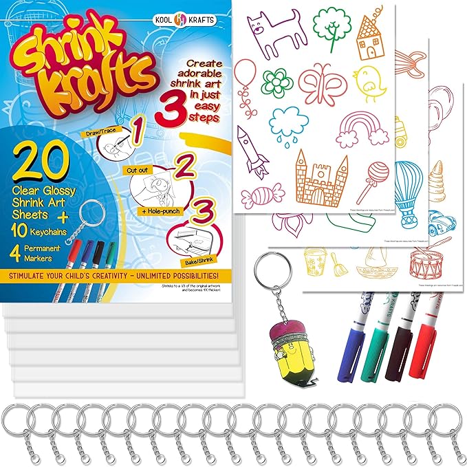 Shrink Krafts - Shrinky Paper Kit for Kids - Arts and Crafts for Girls & Boys Ages 6-12 - Craft Kits Art Set - Indoor DIY Activity Craft Kits - Fun Creative Shrinky Charms for Kids