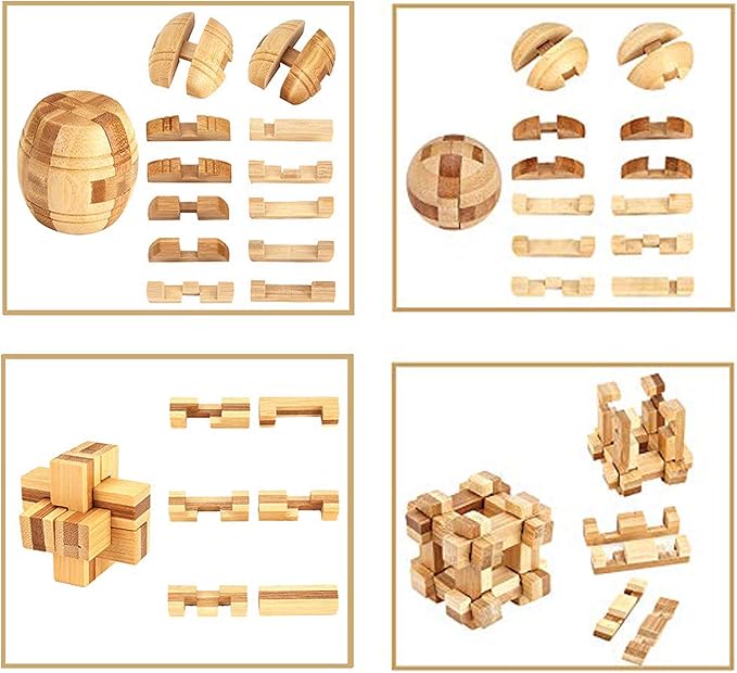 Brain Teaser Puzzle 20Pcs Unlock Interlock Game IQ Test Wooden Toy 3D Unlock Interlock Puzzle Magic Ball Brain Teaser Toy Puzzles for Adults