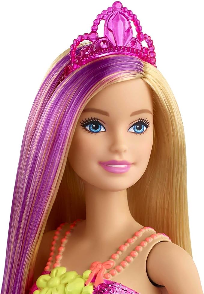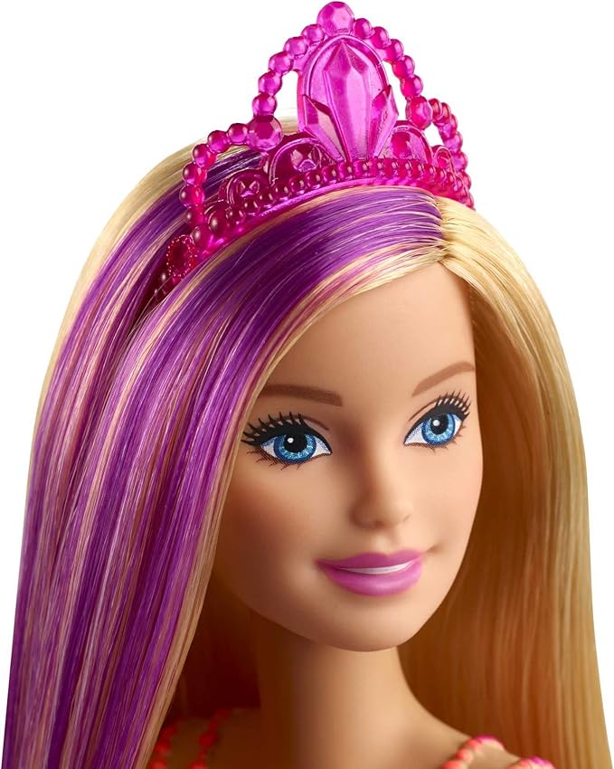 Barbie Dreamtopia Royal Fashion Doll & Accessory, Blonde with Purple Hairstreak Wearing Removable Pink Skirt & Headband