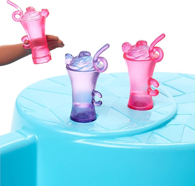 Barbie Doll & Pool Playset with Accessories that Include a Pink Slide, Beverages & Towel, Brunette Fashion Doll in Floral Swimsuit