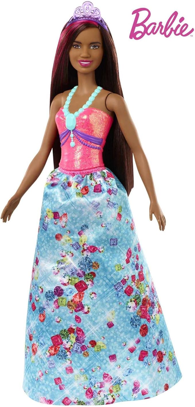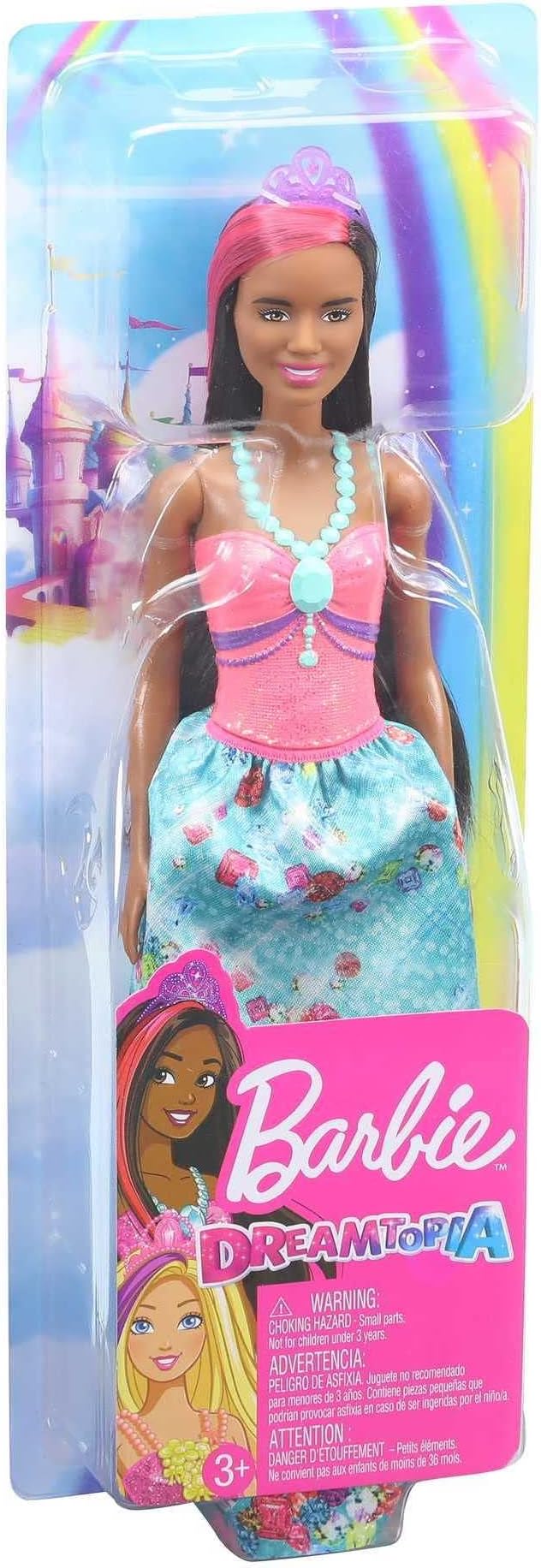 Barbie Dreamtopia Royal Fashion Doll & Accessory, Brunette with Pink Hairstreak Wearing Removable Blue Skirt & Headband