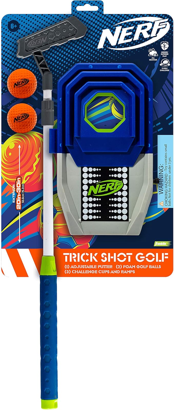 NERF Trick Shot Golf Set - Indoor + Outdoor Putting Trick Shot Kids Golf Set - Includes Putter, Balls, Ramp + Cups - All-in-One Toy for Kids