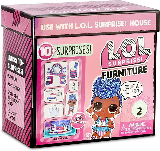 About This L.O.L. Surprise! Furniture with independent Queen doll includes 10+ surprises to unbox! Backstage pack includes a makeover vanity,... Read more