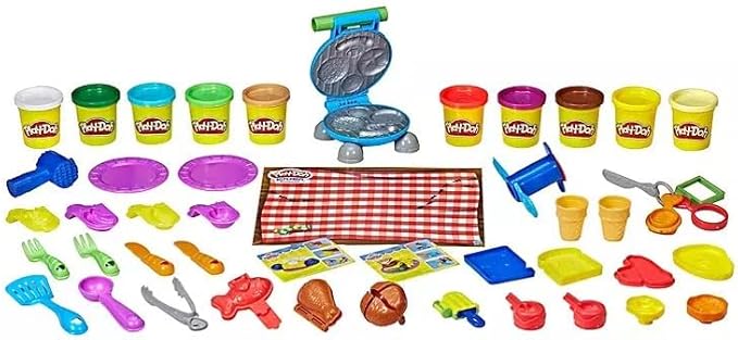 About This Comes with 10 Play-Doh cans Includes grill, picnic mat, grilling utensils, food-shaped molds, tray mold and more Grill... Read more