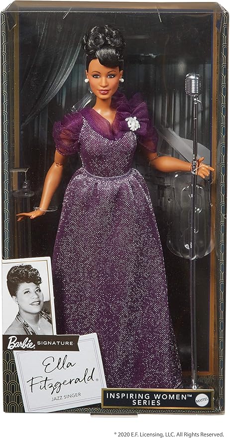 Barbie Inspiring Women Series Ella Fitzgerald Collectible Doll, Approx. 12-in, Wearing Purple Gown, with Microphone, Doll Stand and Certificate of Authenticity