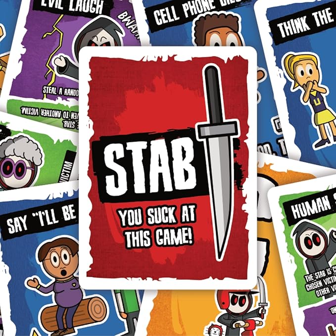 Don't Get Stabbed!: The Party Game Where You Get to Kill Your Family and Friends (for Pretend). Exciting Card Game for Adults and Horror Gift for Scary Movie Fans. Great for Halloween.