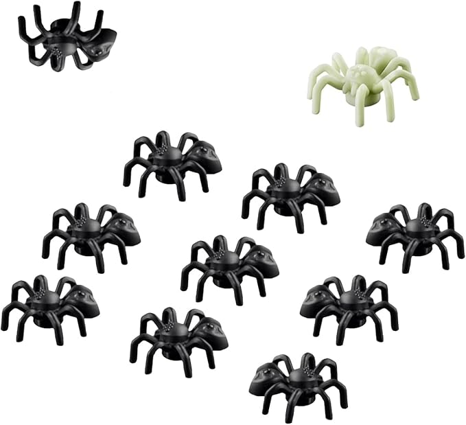 LEGO Animal Halloween Accessory - 10 Black Spiders (with Bonus Glow in The Dark Spider)
