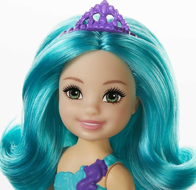 Barbie Dreamtopia Chelsea Mermaid Doll with Teal Hair & Tail, Royal Headband Accessory, Small Doll Bends at Waist