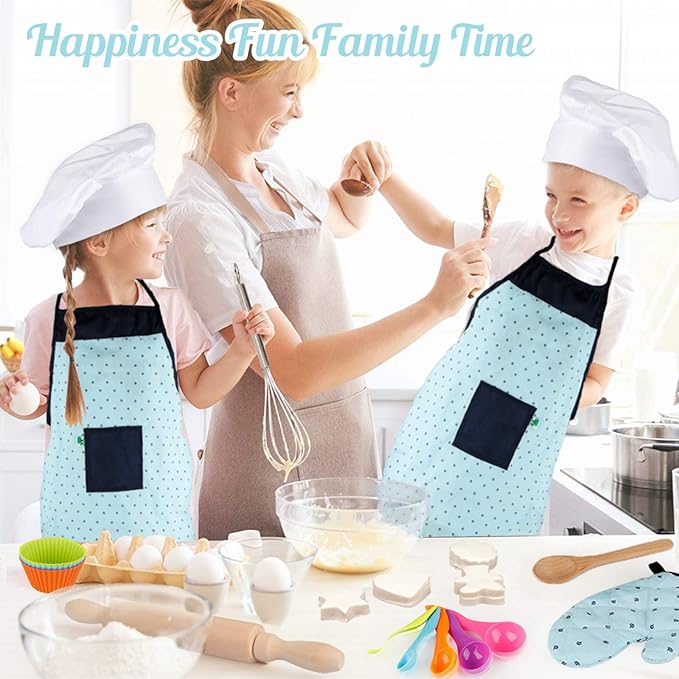 About This Comfortable Cotton Linen Material BASIC BAKING SETS FOR KIDS LEARNING: Chef sets for kids includes kids aprons for... Read more