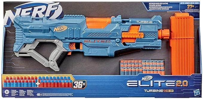 Nerf Elite 2.0 Turbine CS-18 Motorised Blaster, 36 Nerf Darts, 18-Dart Clip, Built-in Customising Capabilities
