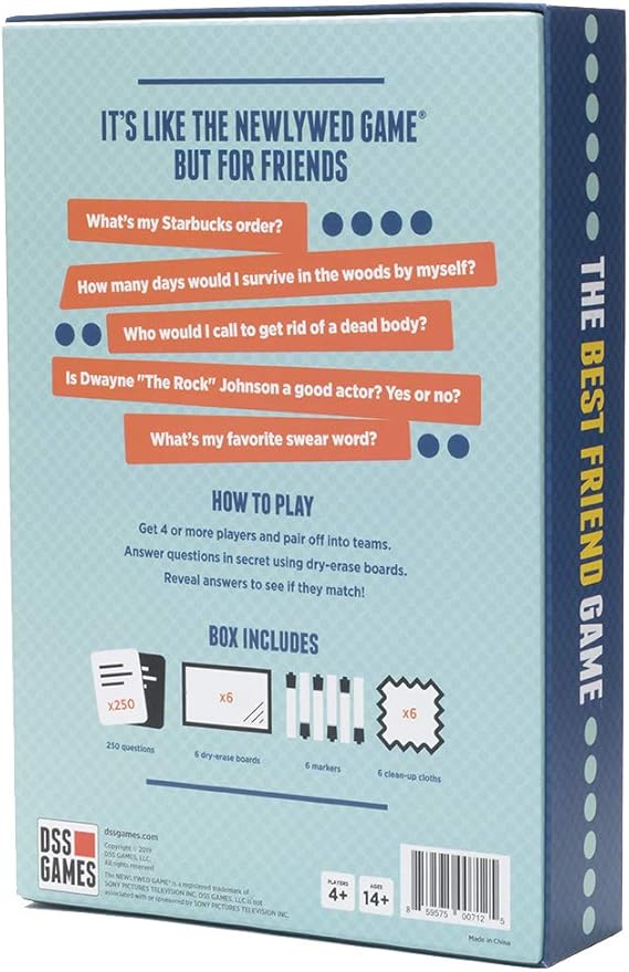 About This 250 questions to see how well you really know your friends Also includes 6 dry-erase boards, 6 markers... Read more