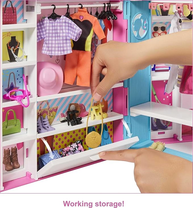 Barbie Dream Closet Playset with 30+ Clothes & Accessories for Barbie Fashion Dolls Including 5 Outfits, Plus Mirror, Desk & Rotating Rack