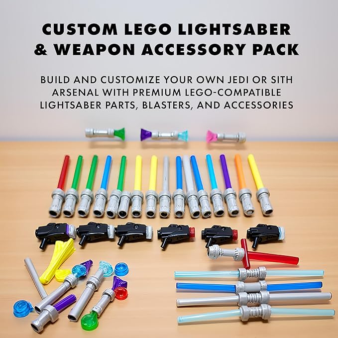 Brick Loot Light Saber & Blaster Weapons Pack, 75+ Mini Accessories for Lego Minifigures, Star Wars Building Set, Compatible with Major Brands, Includes Swords, Sabers, Guns for Kids & Adults Ages 6+