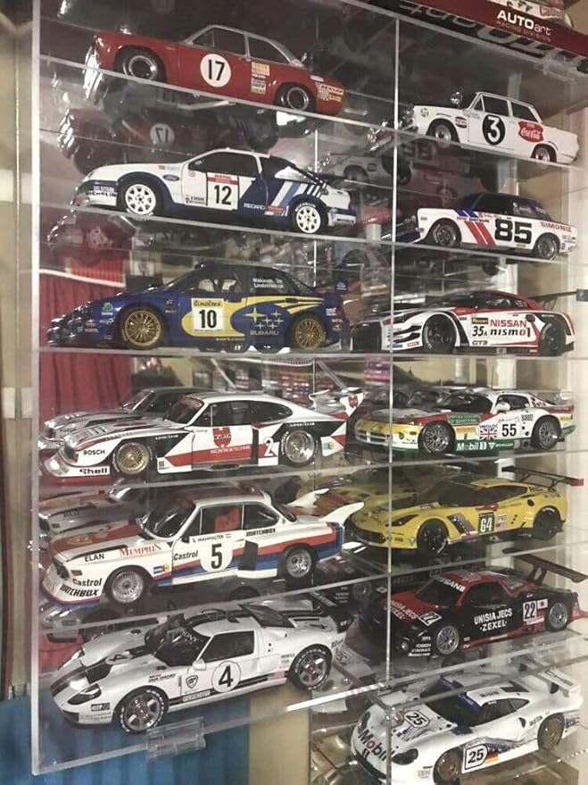 1/18 Scale Diecast Toy Cars Hot Wheels Display Case 98% UV Protection 12 Cars Holder w/ Mirrored Background, 4mm Thick acryliic
