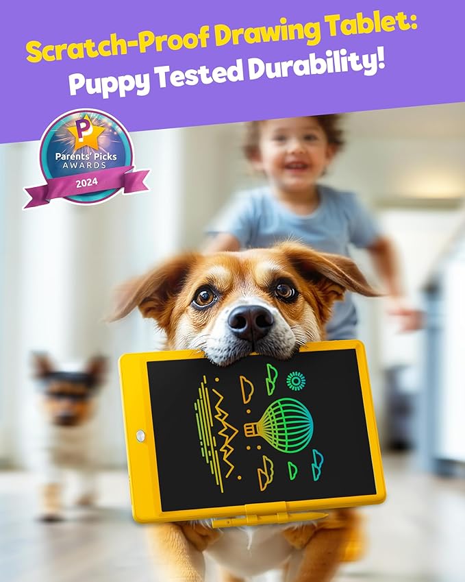 TEKFUN Toys for Girls Boys 10IN LCD Writing Tablet, Magic Doodle Board with Anti-Lost Stylus, Mess Free Coloring for Toddlers Drawing Pad, Toddler Travel Car Plane Trip Toys Gifts (Yellow)
