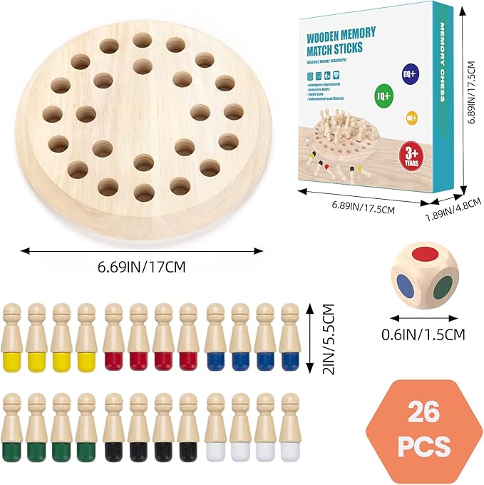 Wooden Memory Chess Matching Game: Family Board Games for Kids and Adults, Montessori Preschool Learning Educational Toy, Birthday Gift for Age 3 4 5 6 7 8+ Boy Girl, Christmas Stocking Stuffers
