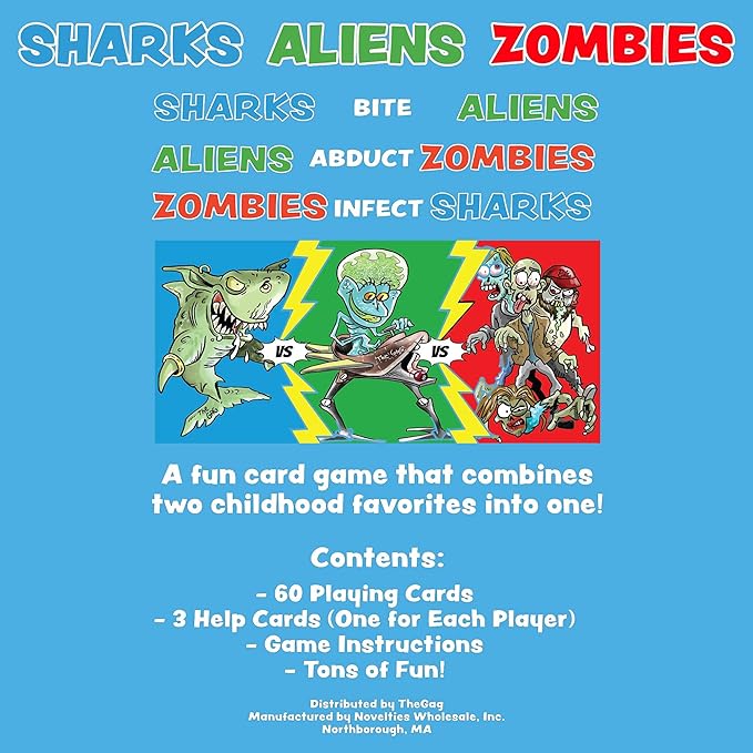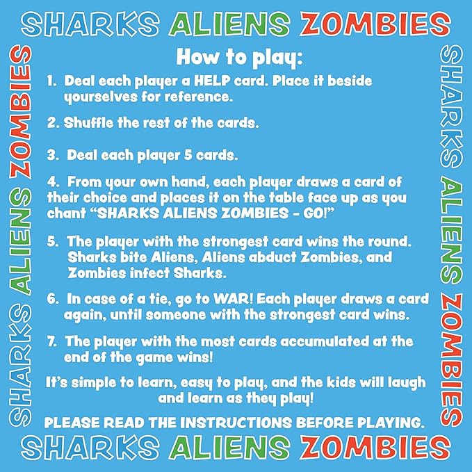 Sharks Aliens Zombies: Fun Card Game for Kids Played Like Rock Paper Scissors War for Family Game Night Gift Giving Stocking Stuffer