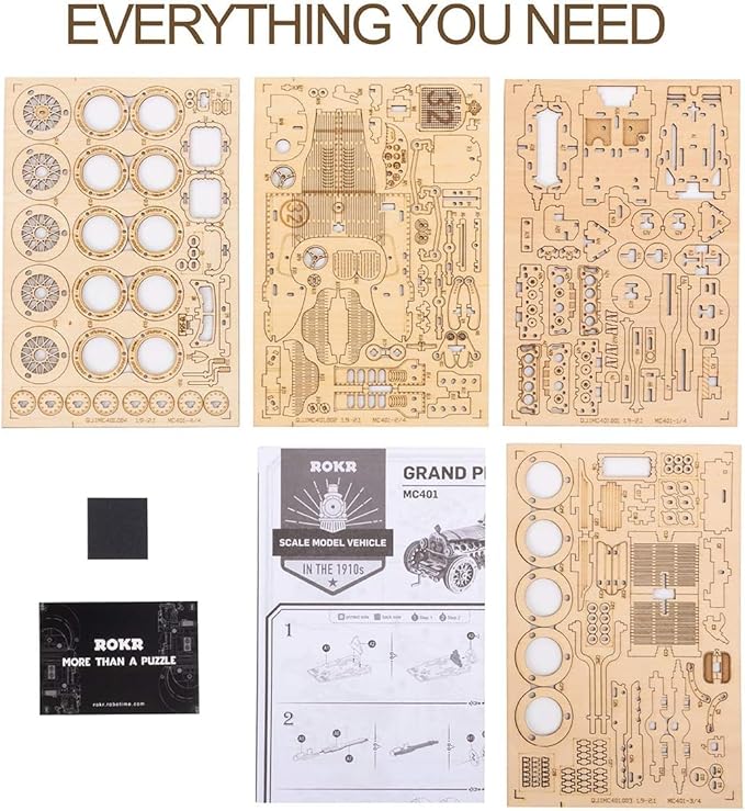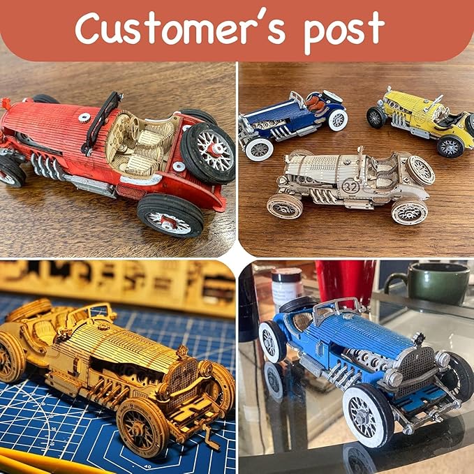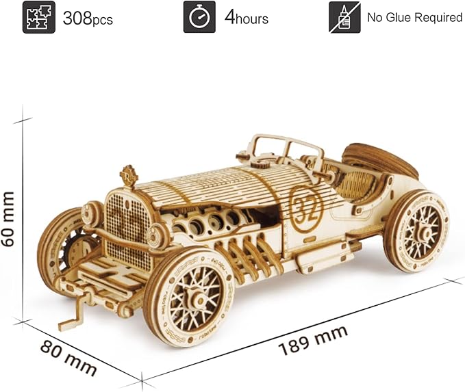 ROKR 3D Wooden Puzzle for Adults Mechanical Car Model-DIY Building Vehicle Kits-Brain Teaser Toys-Gift for Men Women on Birthday/Christmas Day(Grand Prix Car)