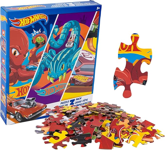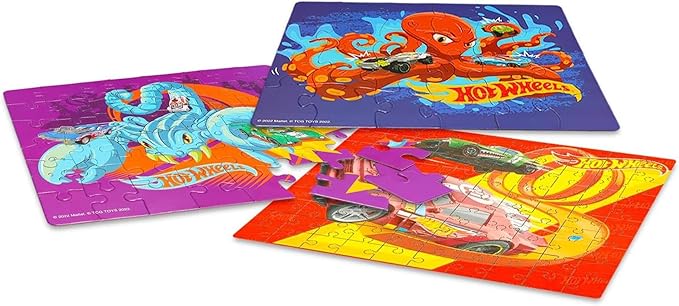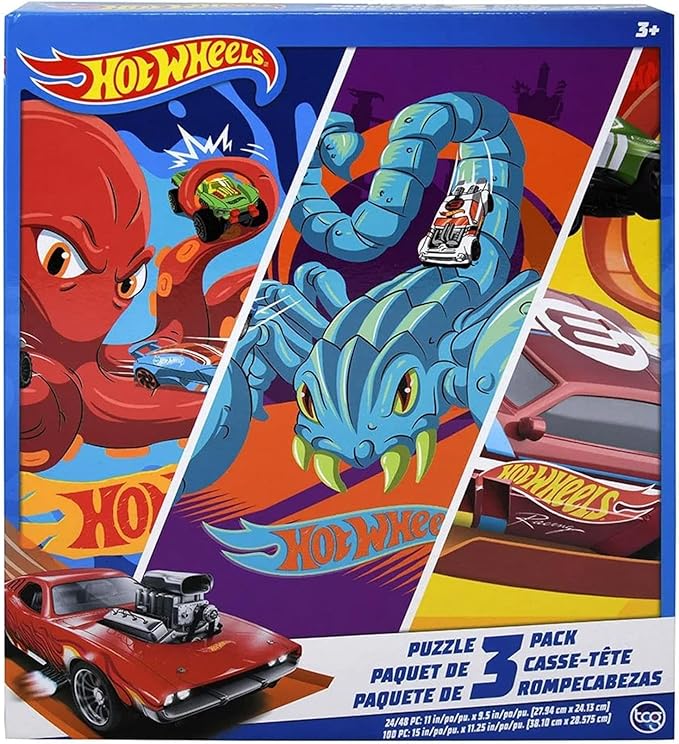 Hot Wheels 3 Pack Kids Puzzles (1X24PC, 1X 48PC, 1X100PC)