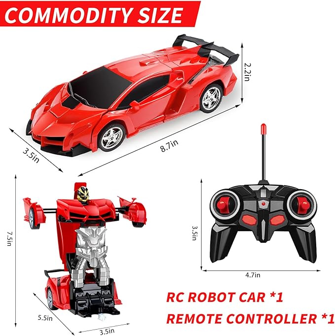 About This 2 In 1 Rc Robot Car: 1:18 scale rc transforming car. Robot car with cool led lights, headlights... Read more