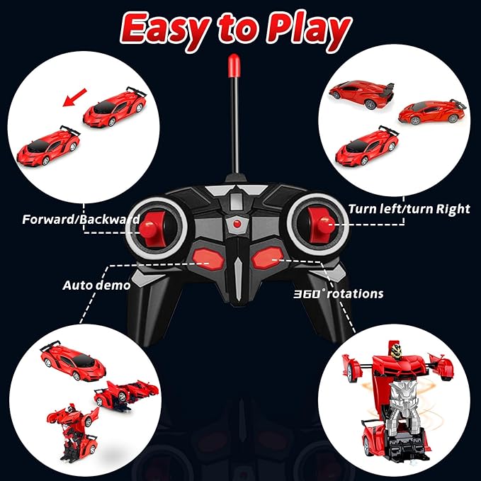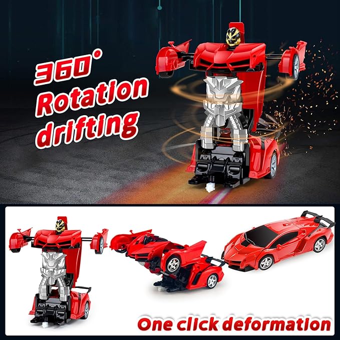BLOOLILIES Transformable Remote Control Car for Boys 4-7 8-12 Gifts,1:18 Transform Robot Toy Car with 360° Rotating Led Lights & One Button Deformation, Kids Robot Toys for 3 4 5 6 7 8 9 10+ Years Old