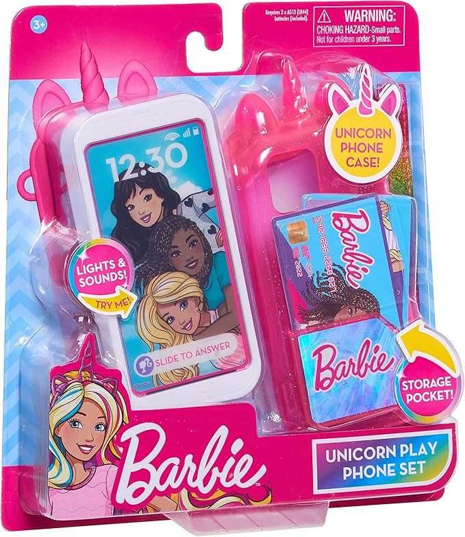 Barbie Unicorn Play Phone Set with Lights and Sounds, Unicorn Phone Case and Wristlet, Toy Cell Phone for Kids, Kids Toys for Ages 3 Up by Just Play