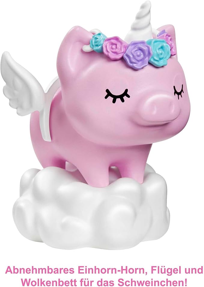 Barbie Extra Doll & Accessories with Pink-Streaked Blonde Crimped Hair in Fluffy Pink Coat with Pet Unicorn-Pig
