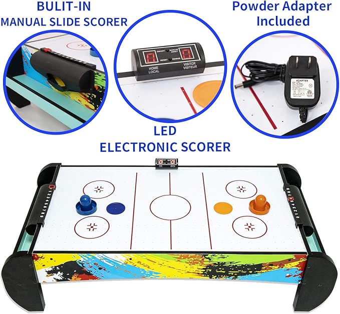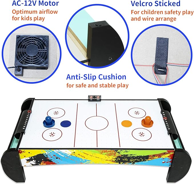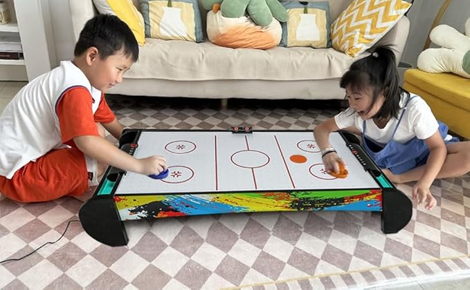 Air Hockey Table for Kids | Tabletop Air Hockey for Children, Girls, Boys, Teens with Air Hockey Pucks and Paddles, Electronic Fans