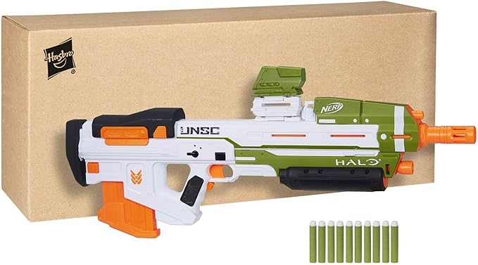 Nerf Halo MA40 Motorized Dart Blaster - Includes Removable 10-Dart Clip, 10 Official Nerf Elite Darts, and Attachable Rail Riser