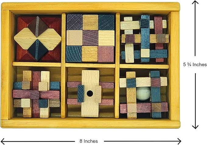 Wooden Brain Teaser Puzzles 6 Pack - 3D Brain Teasers for Adults & Kids - Educational and Fun Gift Ideas - Mind Puzzles for Adults