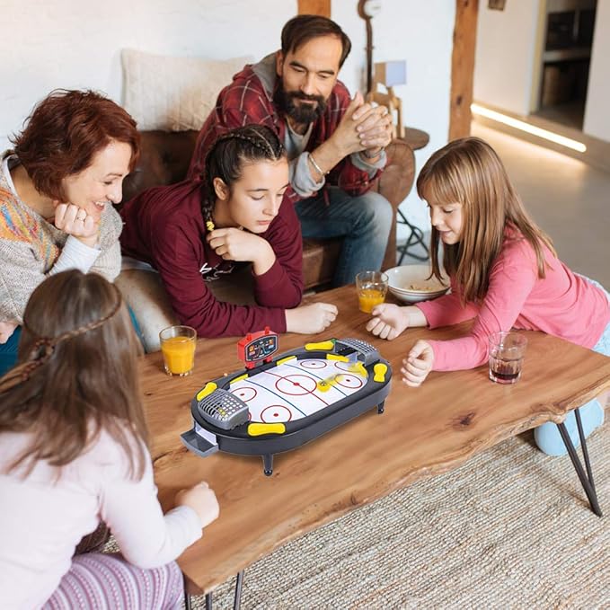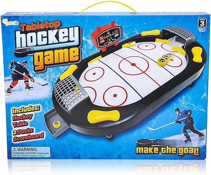 Gamie Air Hockey Tabletop Mini Game, Desktop Sports Game with Mini Hockey Table, 2 Pucks, and Scoreboard, Fun Indoor Games for Home, Office, Best Gift Idea for Kids