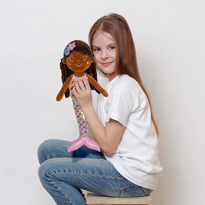 June Garden 15.5" Sparkly Mermaid Layla - Soft Mermaid Plush Stuffed Doll Gift for Toddler Girls