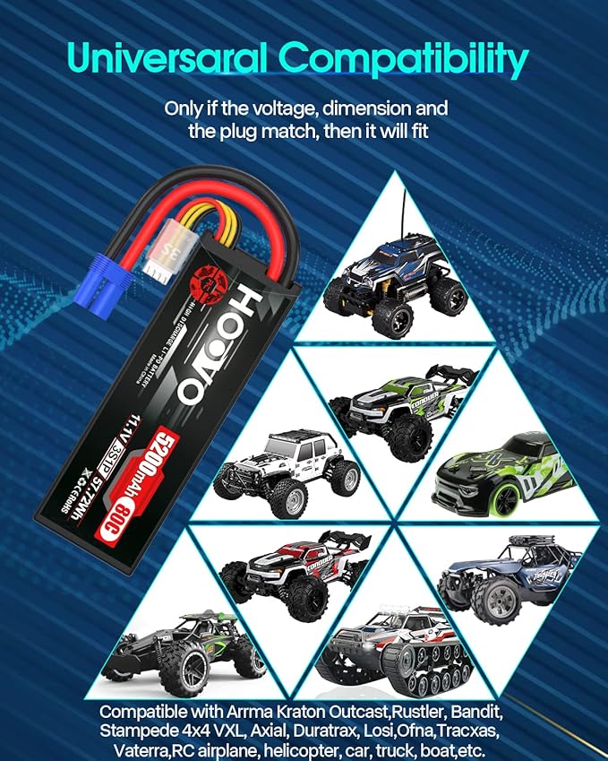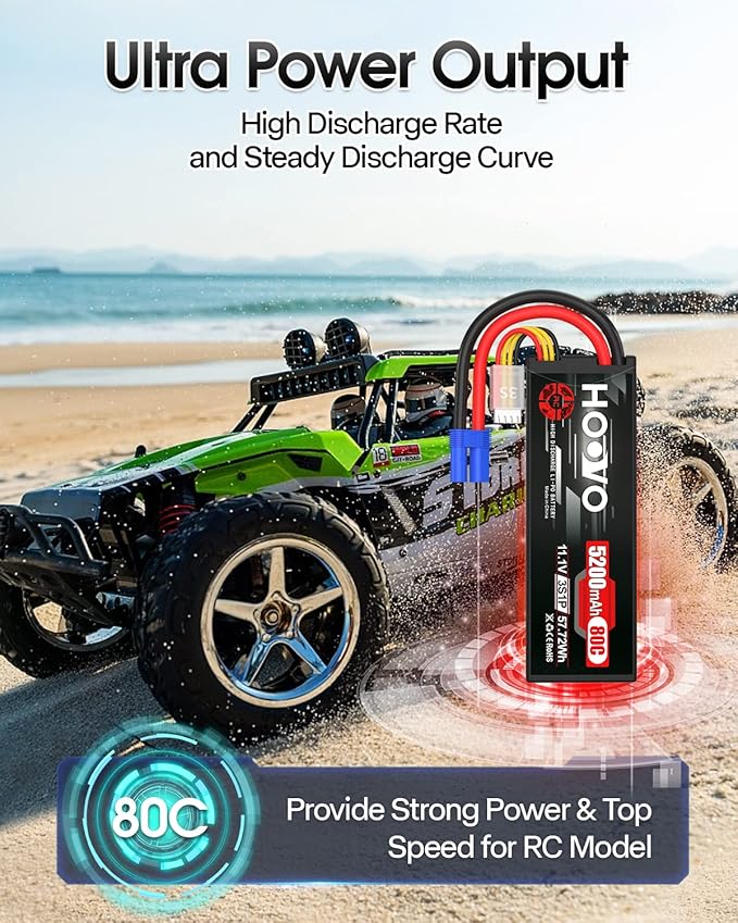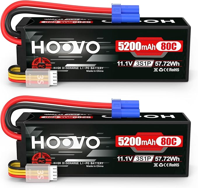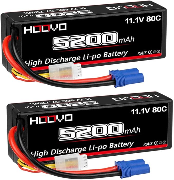HOOVO 3S 11.1V 80C 5200mAh RC Lipo Battery Hard Case with EC5 Connector for RC Car Boat Truck Heli Airplane UAV Drone FPV Racing (2 Packs)