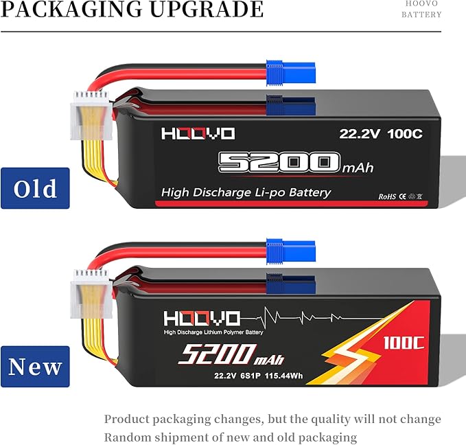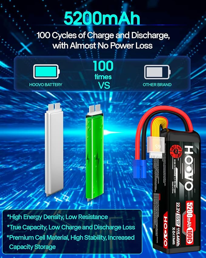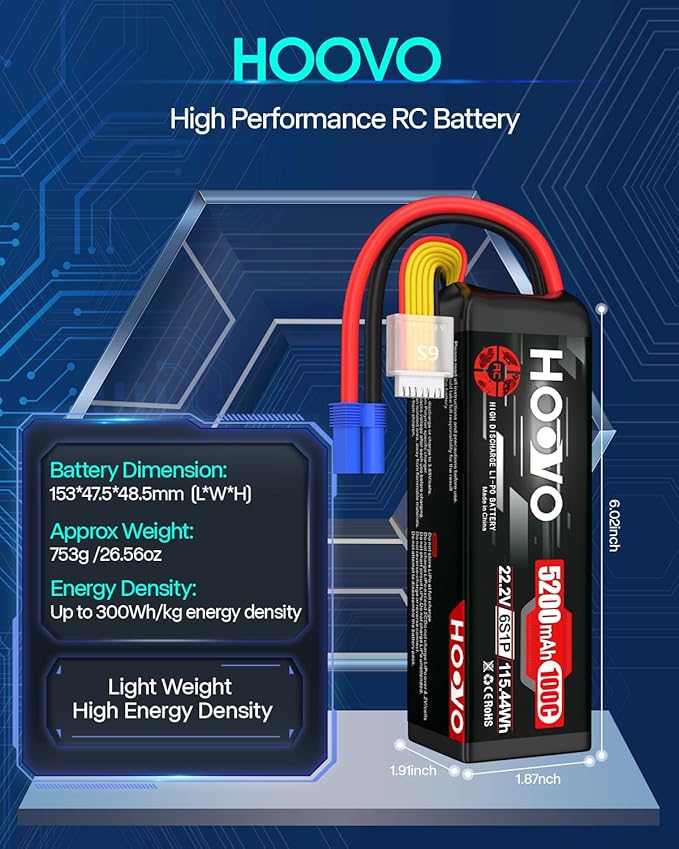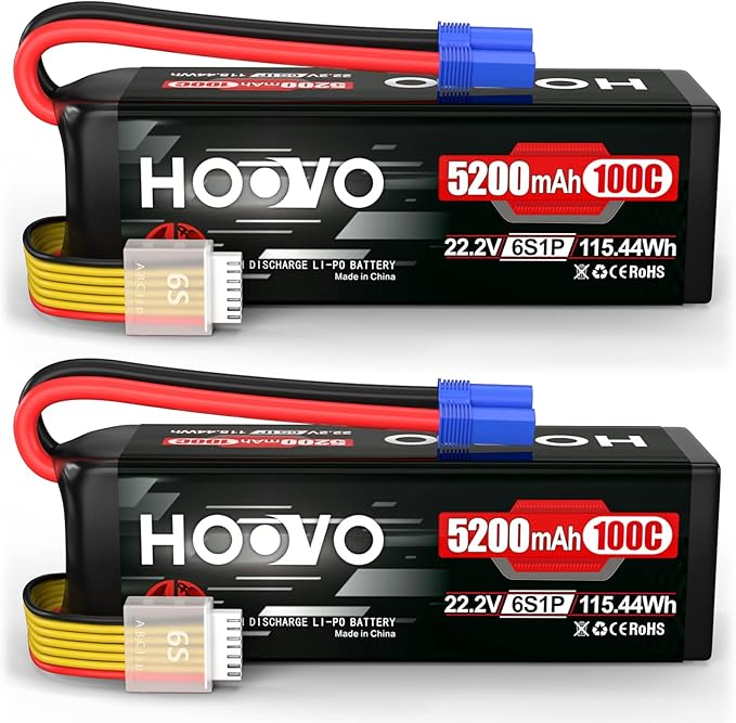 HOOVO 6S Lipo Battery 22.2V 100C 5200mAh with EC5 Connector for RC Car Truck Truggy Buggy Tank RC Airplane Helicopter Boat Car Racing Vehicle(2 Pack)