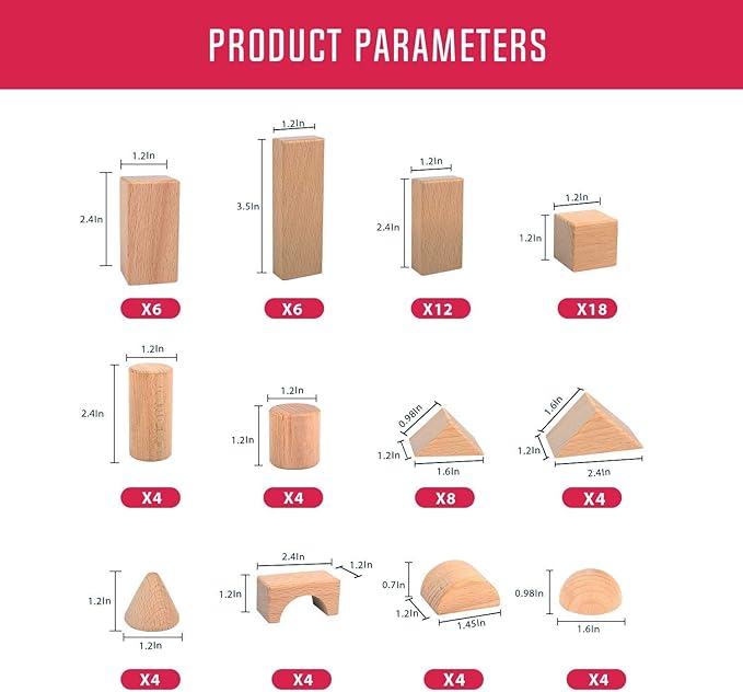 Wooden Building Blocks Set for Kids - Stacker Stacking Game Construction Toys Set Preschool Colorful Learning Educational Toys - Geometry Wooden Blocks for 3+ Year Old Boys & Girls