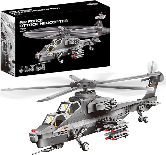Attack Helicopter Air Force Building Block Set – 283-Pcs Helicopter Building Toys Set – Building Block Plane Toy for Kids Older Than 10 and Adults – Compatible with All Building Bricks