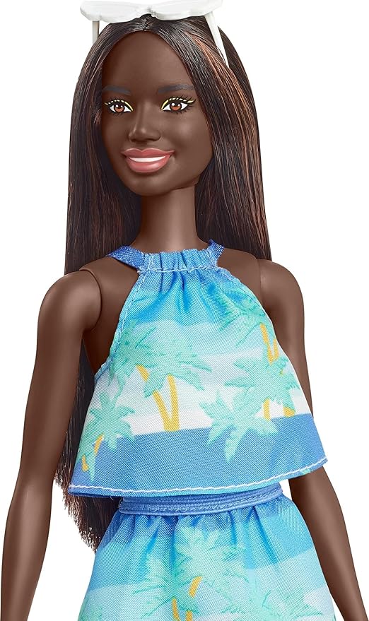 Barbie Loves The Ocean Doll with Brown Hair Weariing Tropical Print Dress & Accessories, Fashion Doll & Clothes Made from Recycled Plastics