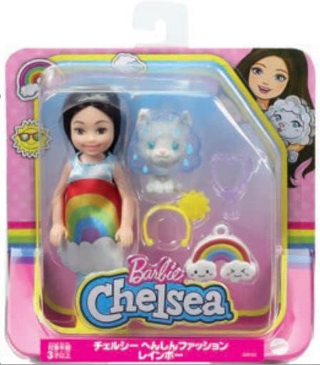 Barbie Chelsea Doll, 6-Inch Brunette Doll with Sun Headband, Rainbow Outfit, Pet Kitten, Charm Keychain & Accessories