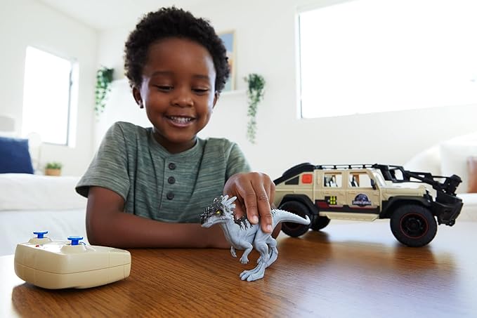 Matchbox RC Jurassic World Dominion Jeep Gladiator, 6-inch Dracorex Dinosaur Figure, Remote-Control Toy Car with Auto-Capture Claw