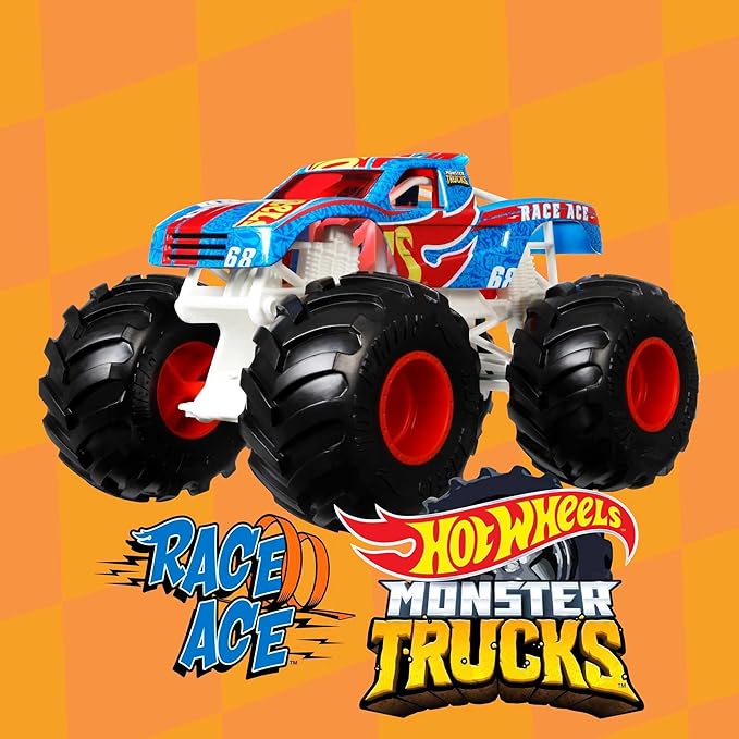 Hot Wheels Monster Trucks Toy Truck, Oversized 1:24 Scale Die-Cast Race Ace for Kids & Collectors