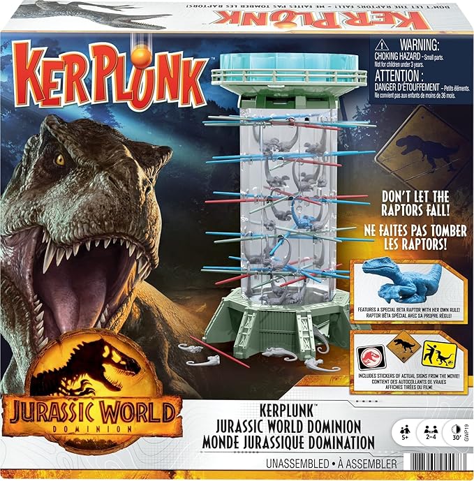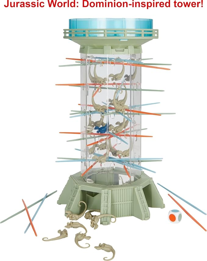 Mattel Games Jurassic World Dominion KerPlunk! Raptors Game with Tower, Sticks and Toy Velociraptor Dinosaurs, Toy and Collectible