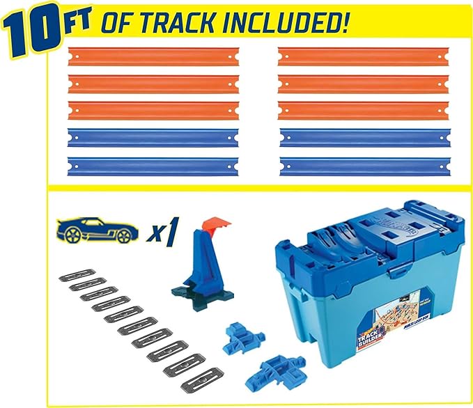 Hot Wheels Toy Car Track Set, Track Builder Multi Loop Box Playset & 1:64 Scale Car, 10 Feet of Components & Connectors to Create Builds, Storage