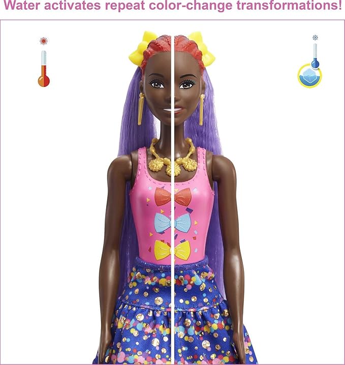 About This Plastic Made in the USA With 25 surprises in one package, Barbie Color Reveal Glitter! Hair Swaps deliver... Read more
