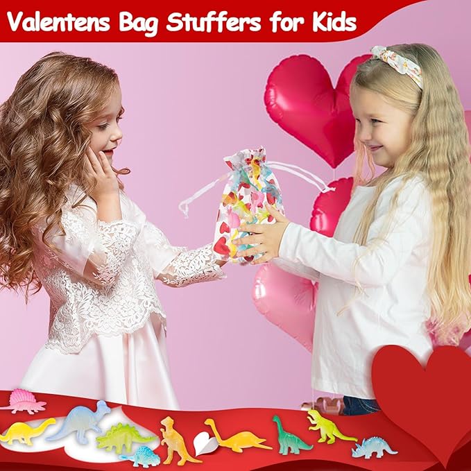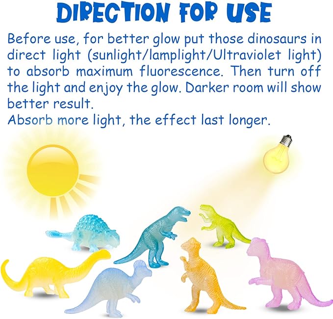 48Pcs Glow in Dark Mini Dinosaur Figures Kids Valentines Day Gifts School Birthday Party Favors Supplies Dino Cupcake Toppers Pinata Goodie Bags Stuffers Classroom Prizes Carnival Treasure Bulk Toy