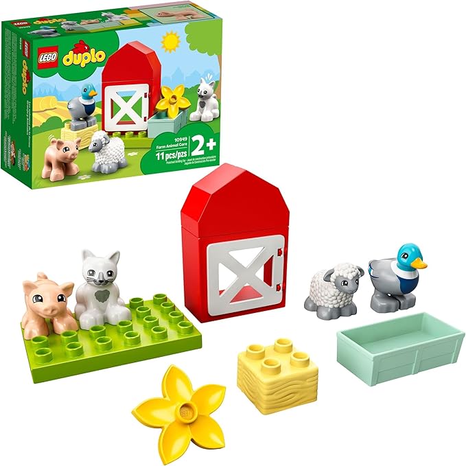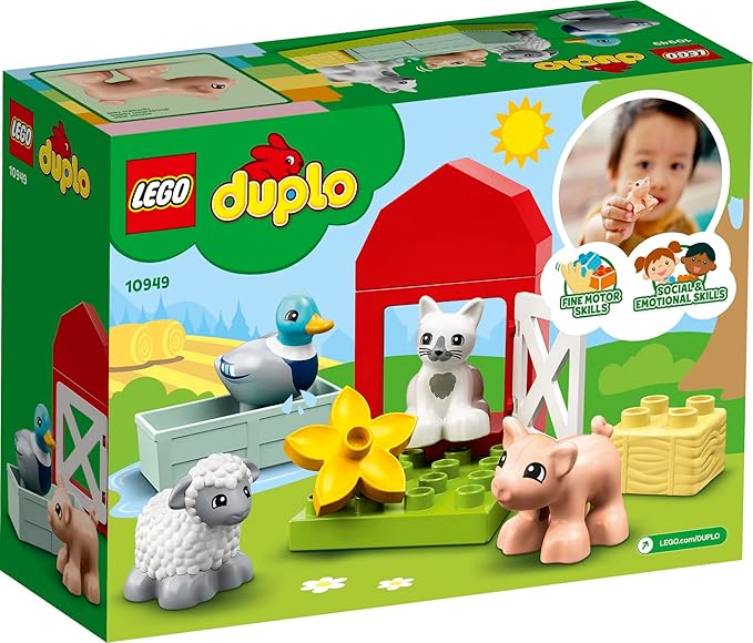 LEGO DUPLO Town Farm Animal Care 10949 Toy for Toddlers, Girls and Boys 2 Plus Years Old with Duck, Pig, Sheep & Cat Figures, Early Development Toys