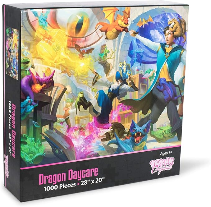 Dragon Daycare Fantasy Wizard Puzzle for Adults and Kids | Difficult 1000 Piece Jigsaw Puzzle Toy | Fun Quarantine Gift | Interactive Brain Teaser Challenge for Game Night | 28 x 20 Inches